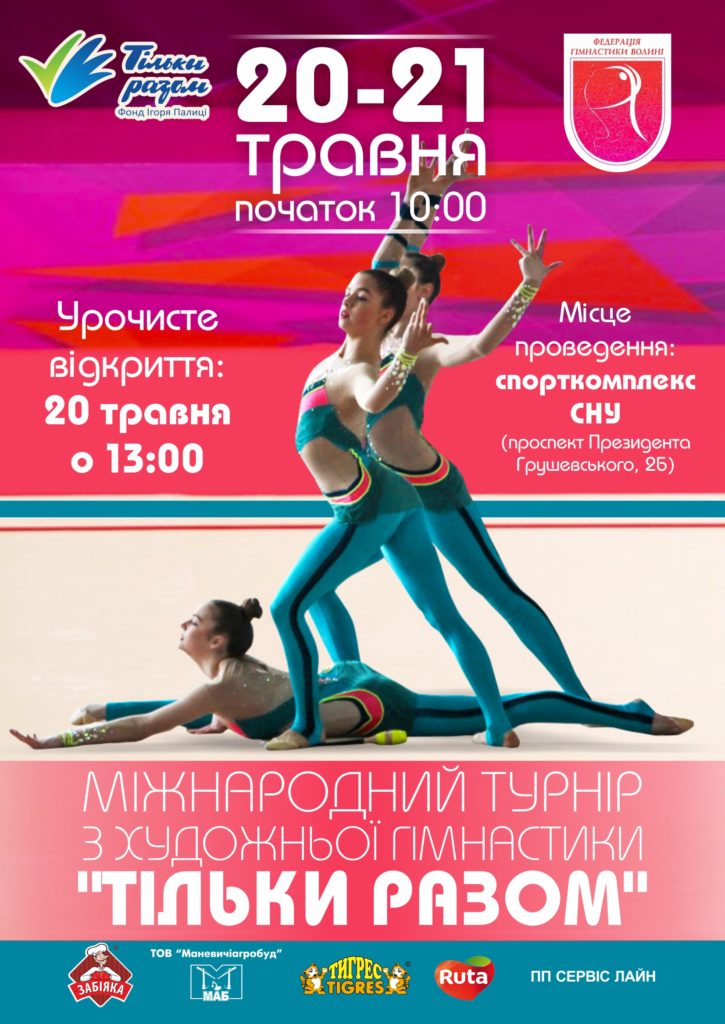 Перший міжнародний турнір з художньої гімнастики «Тільки разом» відбудеться у спортивному комплексу СНУ імені Лесі Українки 20-21 травня за підтримки Фонду Ігоря Палиці «Тільки разом», повідомили у прес-службі Фонду.