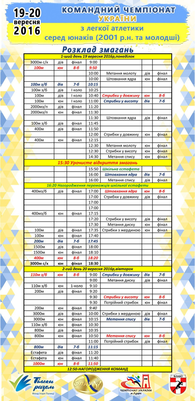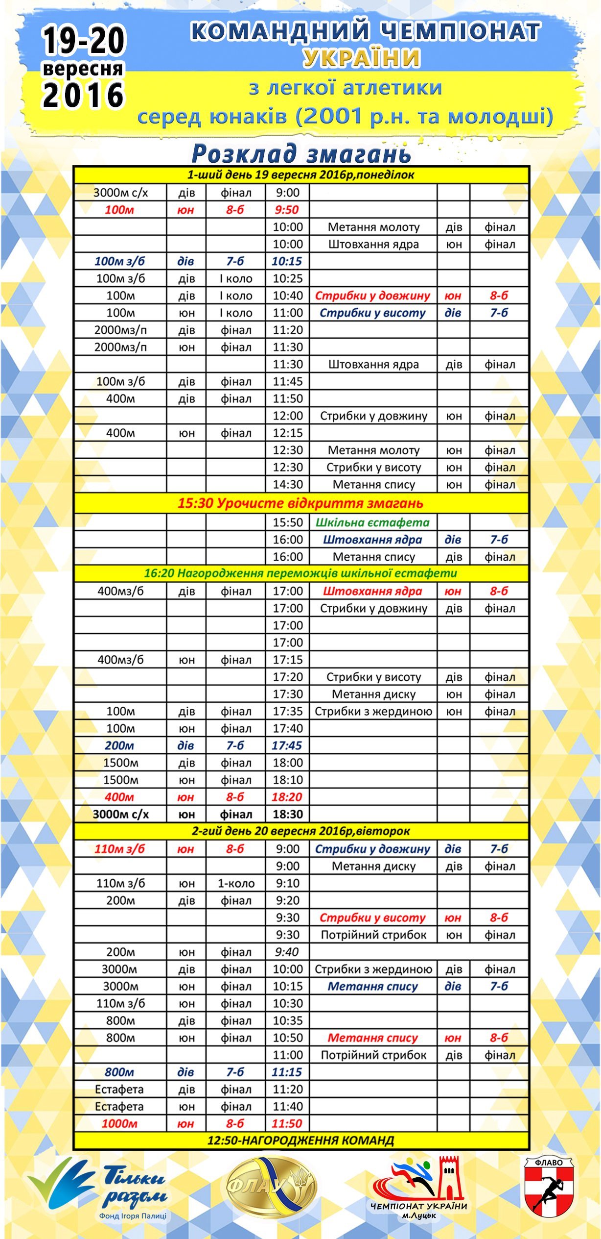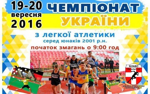 Командний чемпіонат України з легкої атлетики серед юнаків 2001 року народження і молодші відбудеться у Луцьку 19-20 вересня.