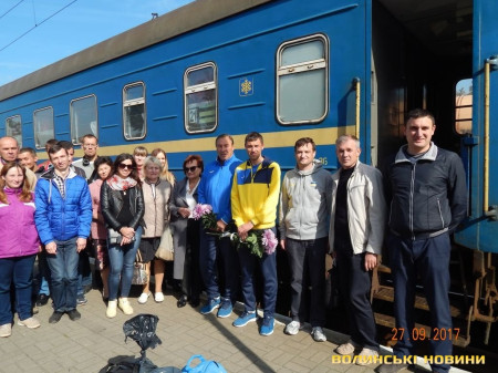 Сьогодні пообіді, після довгої дороги, волинських спортсменів урочисто зустріли в обласному центрі Волині. Привітати їх прийшли спортивні активісти, учасники регіонального центру з фізичної культури і спорту інвалідів «ІнваСпорт», представники Федерації футболу Волині, працівники Академії рекреаційних технологій і права, в якій саме і навчається Віталій Романчук.