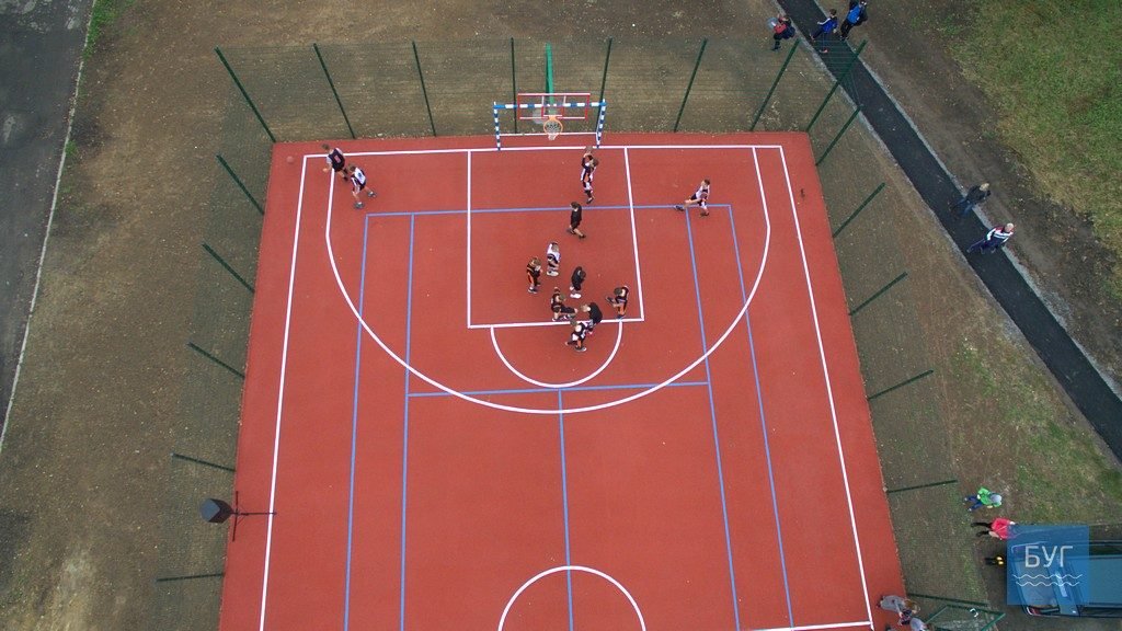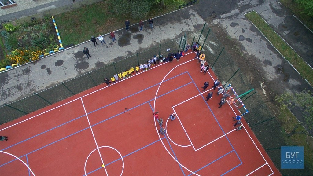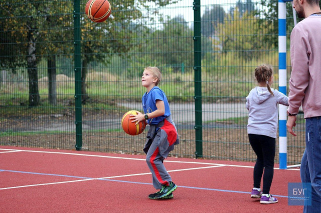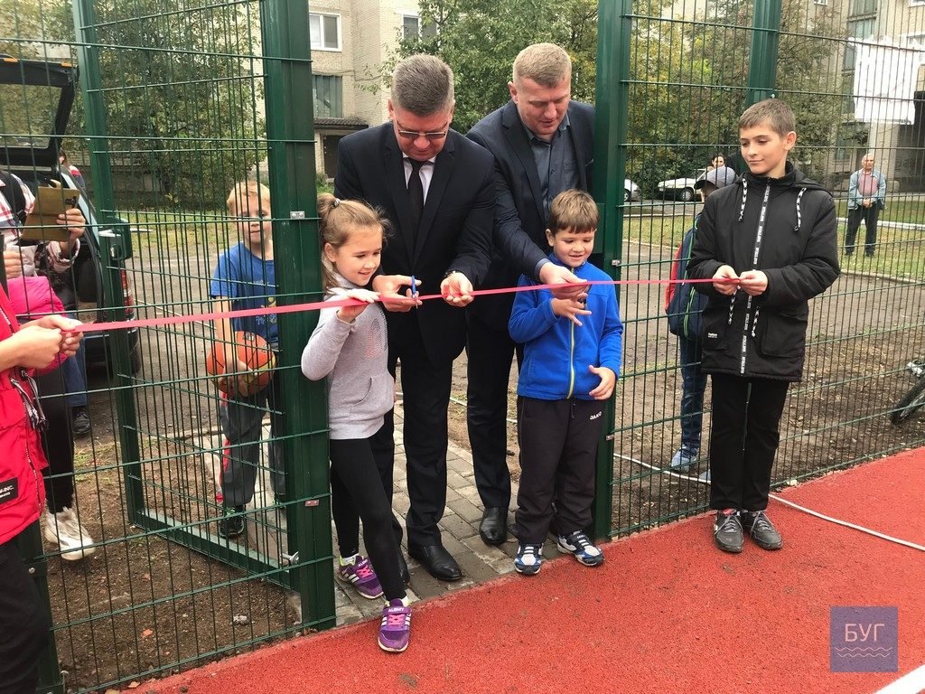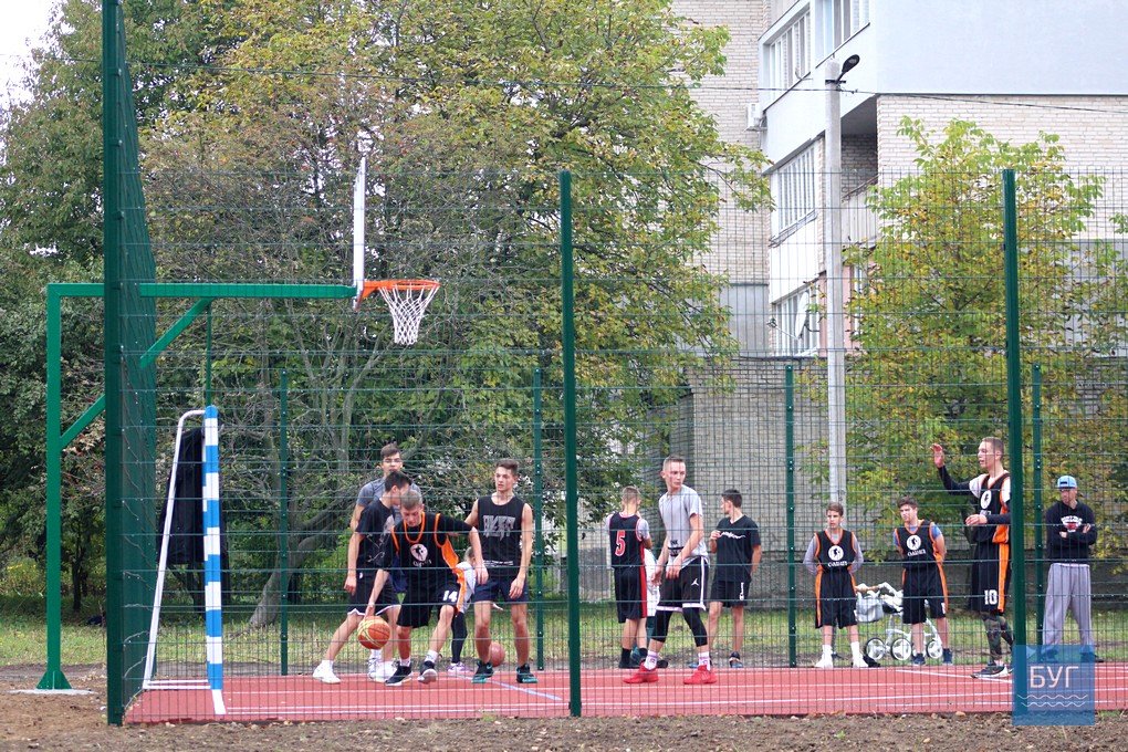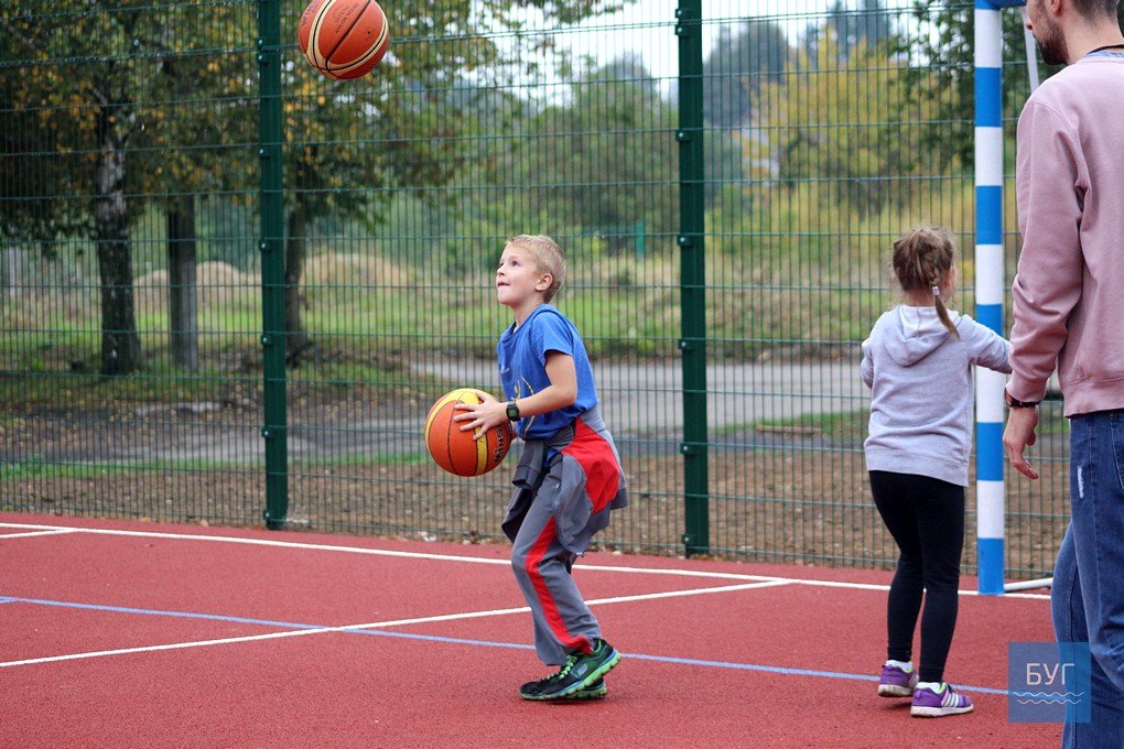 Одразу ж і випробували спортивні майданчики. На баскетбольному провели змагання зі стрітболу три на три. На іншому пройшла товариська гра між юними футбольними командами «Шахтар» та «Новік».