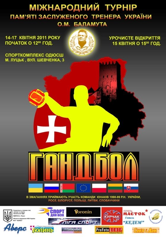 14 – 17 квітня відбудеться традиційний Міжнародний турнір з гандболу пам’яті заслуженого тренера України Олександра Баламута «Кубок Баламута» серед юнаків, що народилися у 1998 році.