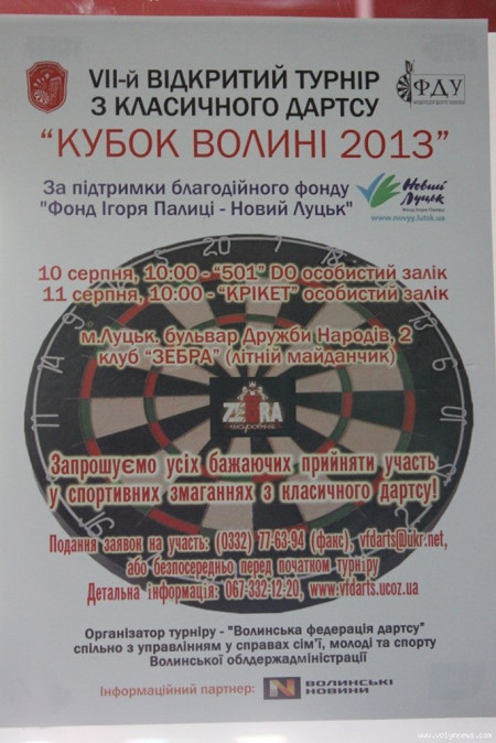 Спорт – це не тільки важкі силові навантаження та напруга - так вважають учасники VII відкритого турніру з класичного дартсу, який організовує «Волинська федерація дартсу» за сприяння «Фонду Ігоря Палиці - Новий Луцьк».