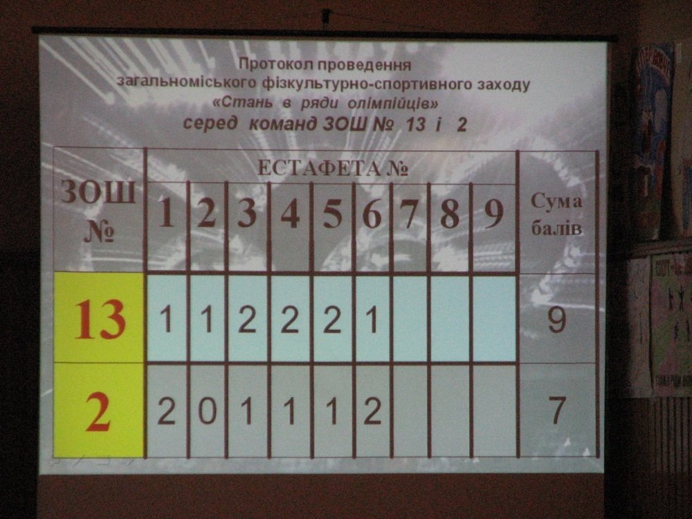 Вчора за місце у рядах олімпійців змагалися дві луцькі ЗОШ №2 («Фаворит») та №13 («Олімпійки»). Від початку змагань лідирували «Олімпійки». Команда «Фаворит» також показувала хороші результати, хоча й відставала впродовж гри на 2-3 бали.