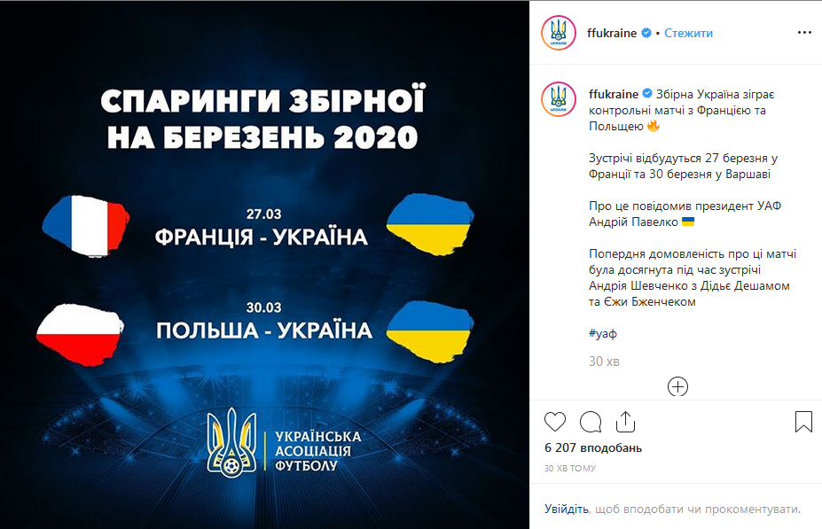 Так, з французами «синьо-жовті» зіграють на виїзді 27 березня, а через три дні поїдуть в гості до збірної Польщі.