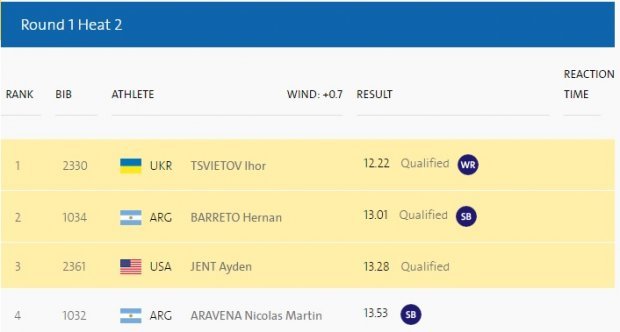 Українець показав час 12,22 секунди.