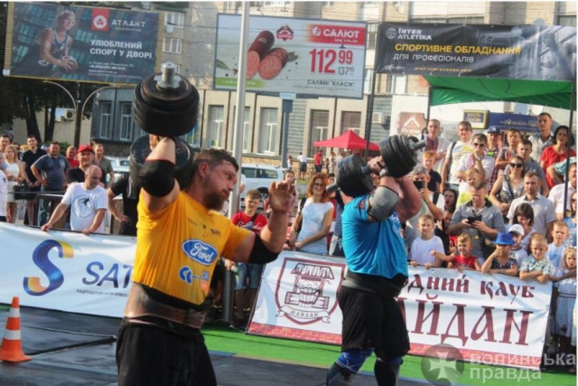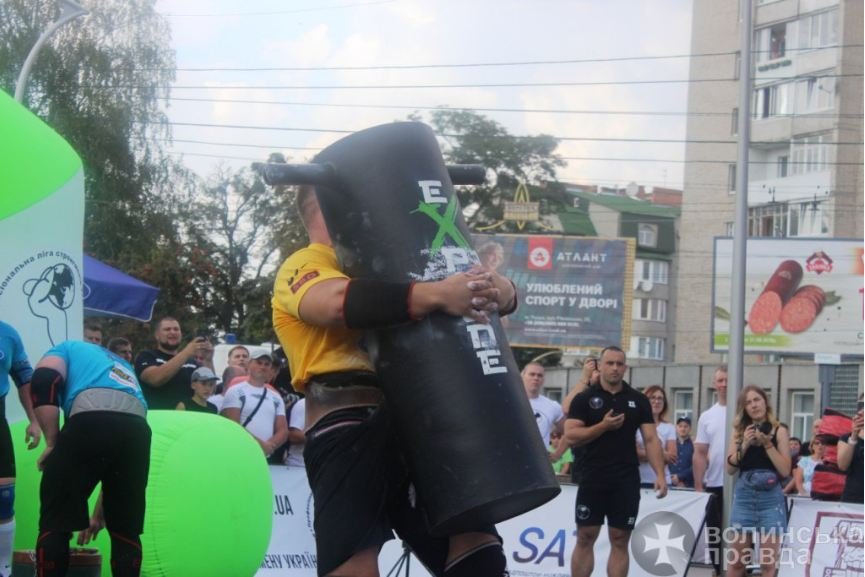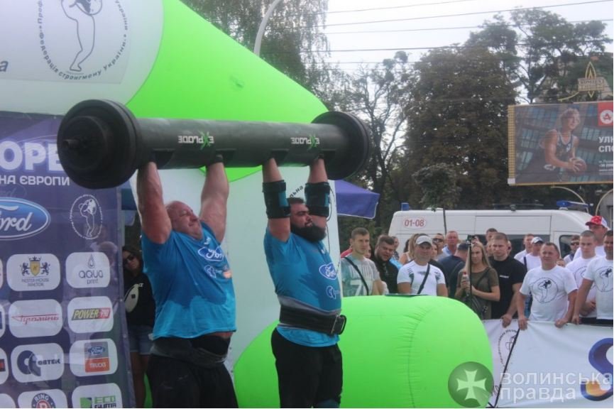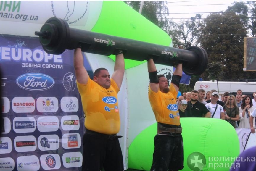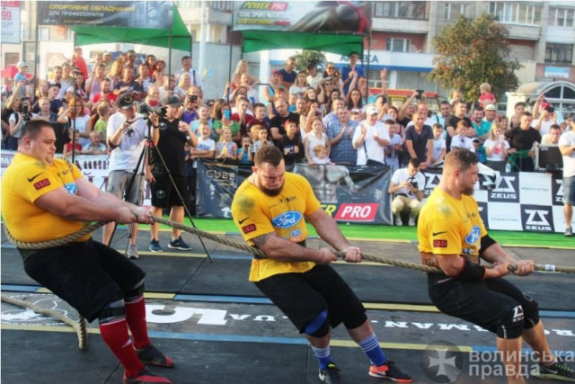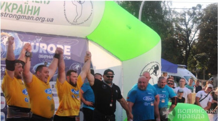 Збірна України зі стронгмену перемогла збірну європейських богатирів. Товариські змагання відбулися в День незалежності України, 24 серпня, в обласному центрі Волині.