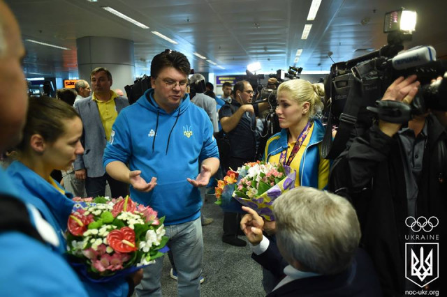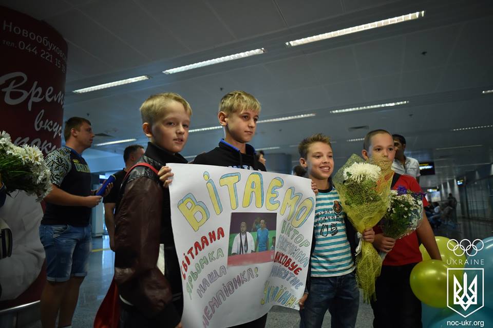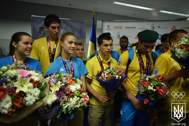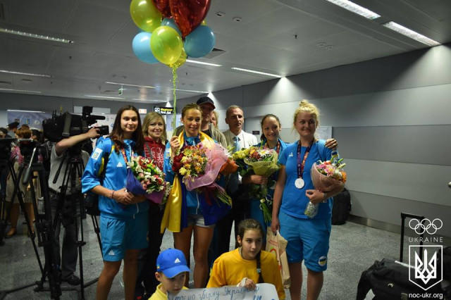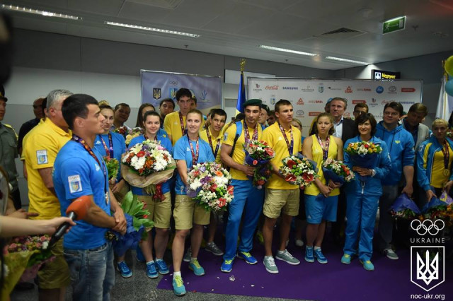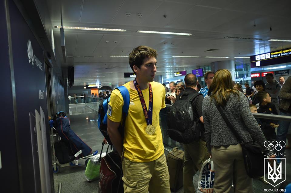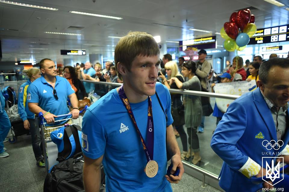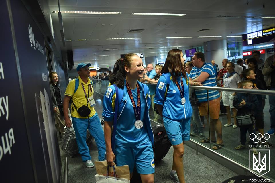 В столичному аеропорту «Бориспіль» зібралась багаточисленна армія спортивних вболівальників, яка зустрічала співвітчизників-тріумфаторів перших в історії Європейських ігор. Українських атлетів, які повернулися з Баку, зустрічали президент Національного олімпійського комітету України Сергій Бубка, міністр молоді та спорту України Ігор Жданов, президент Національного комітету спорту інвалідів України Валерій Сушкевич, голова фізкультурно спортивного товариства «Динамо» Віктор Корж, представники національних федерацій, спортивних товариств, колеги, рідні, друзі та близькі спортсменів, журналісти.