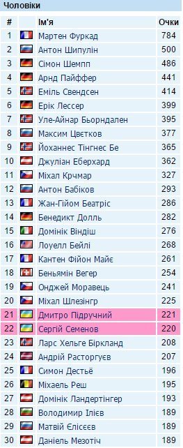 Лідером сезону з величезним відривом залишається француз Мартен Фуркад.