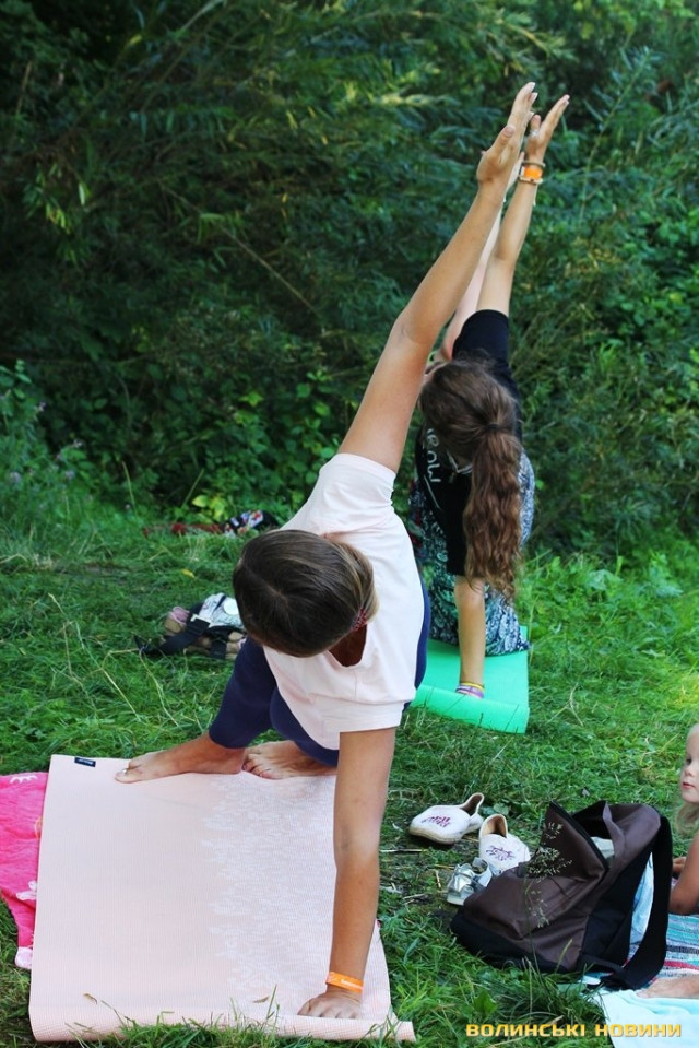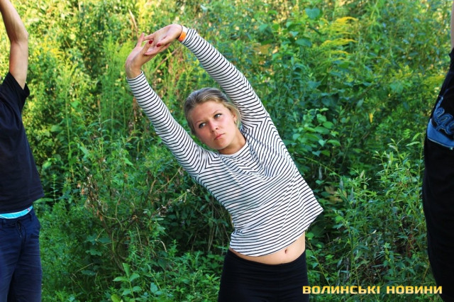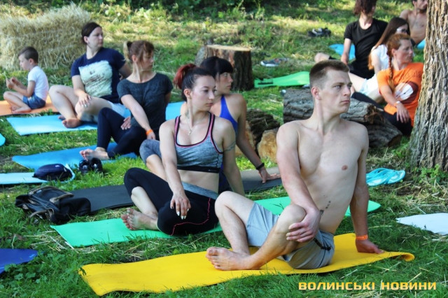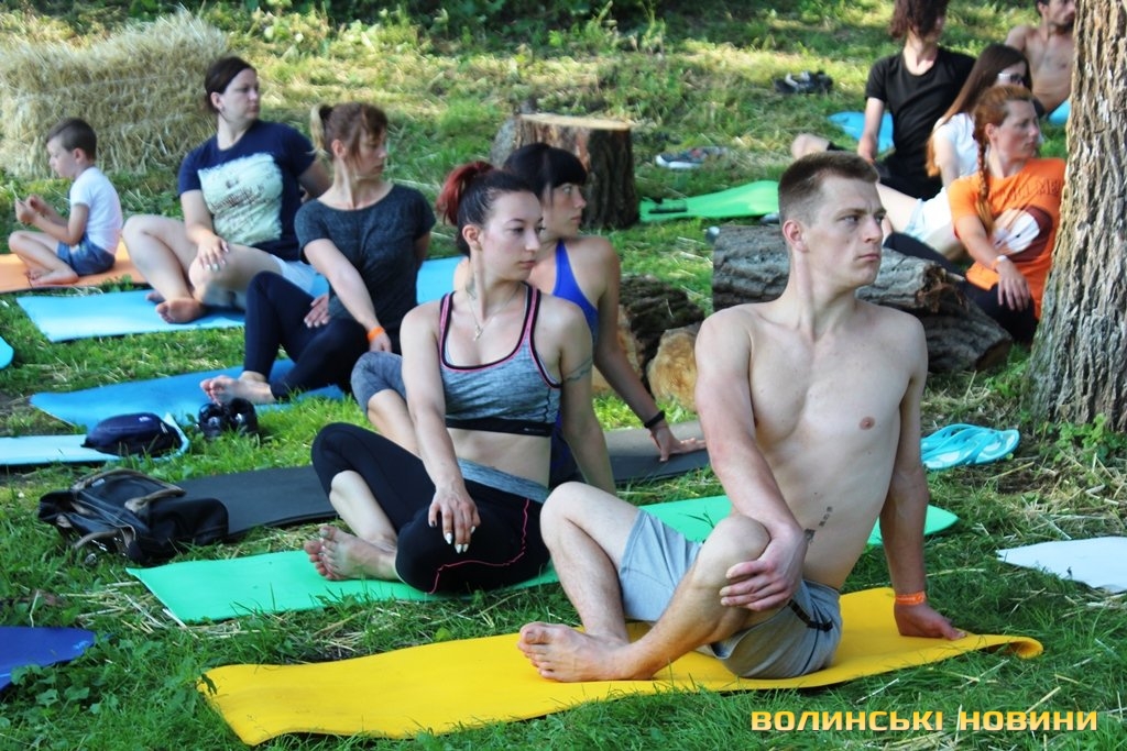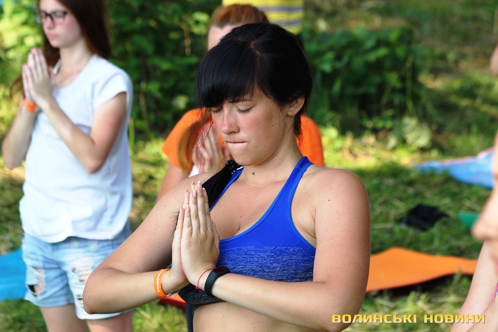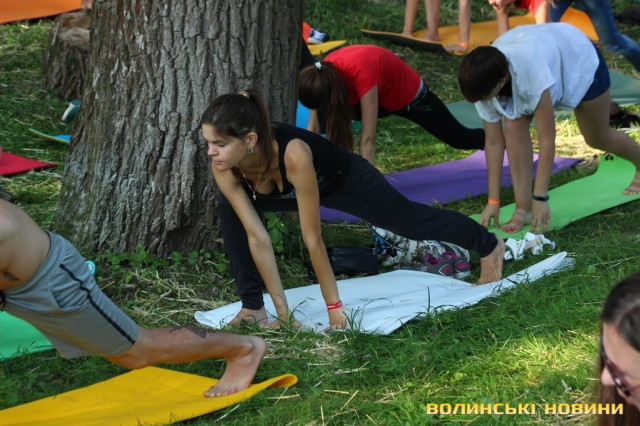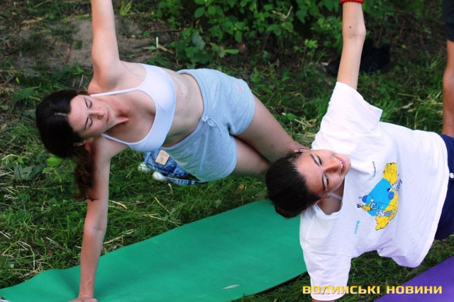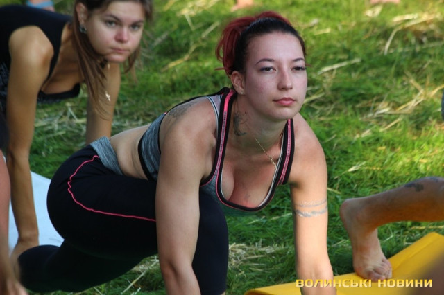 На початку заняття сертифікований інструктор з йоги в Луцьку Христина Губська допомогла усім розслабитися та абстрагуватися від різних думок. Ну а далі всі гуртом перейшли до вправ.