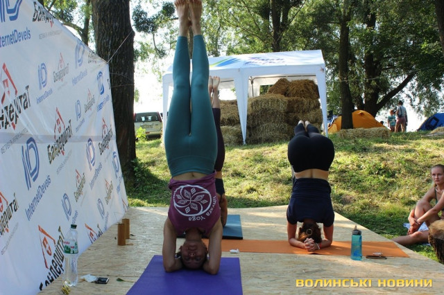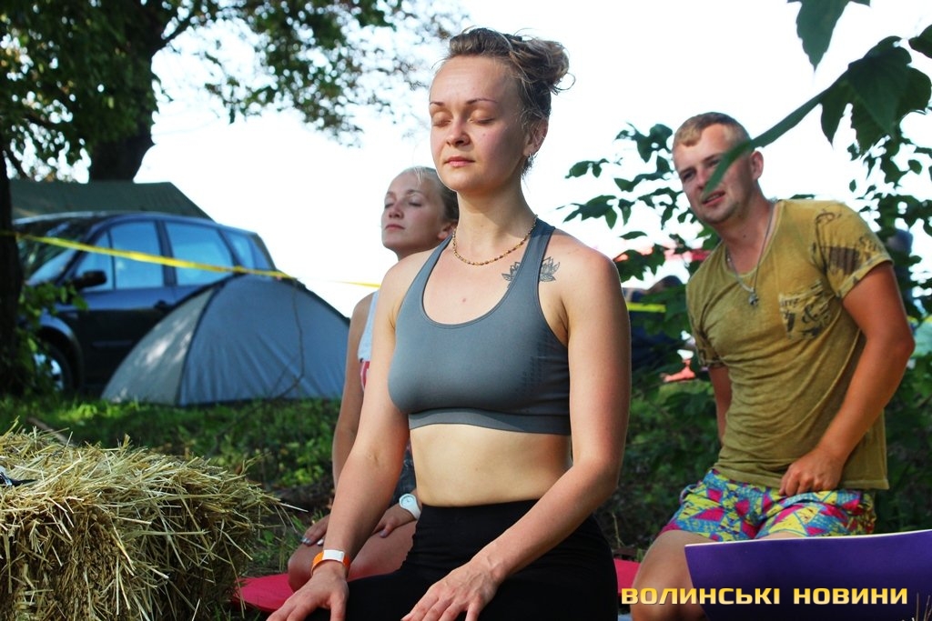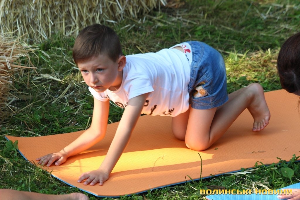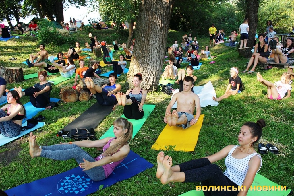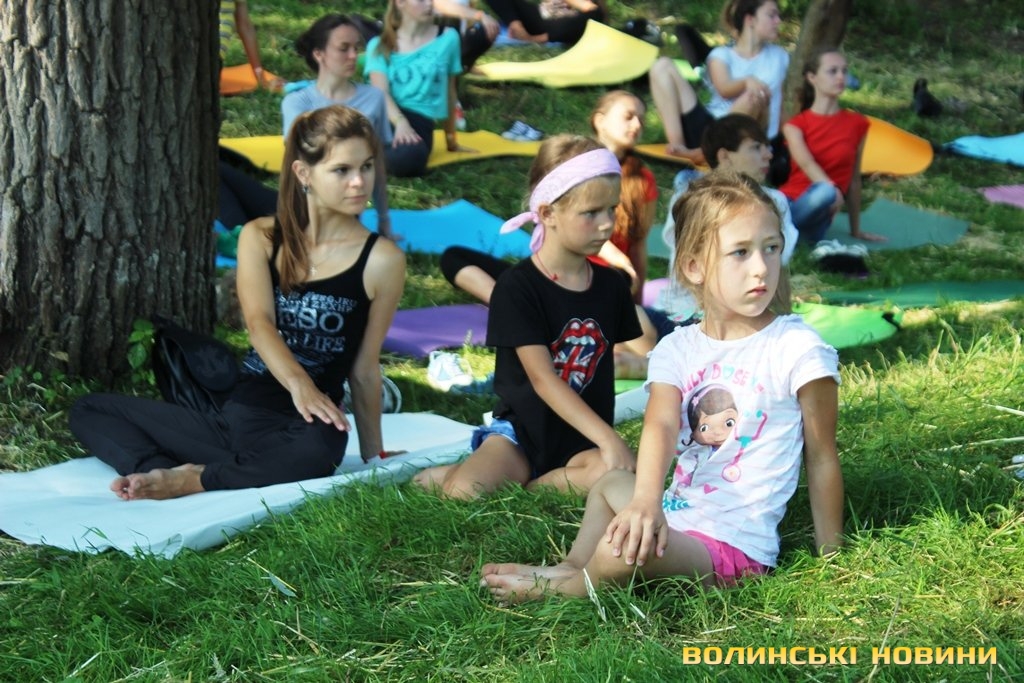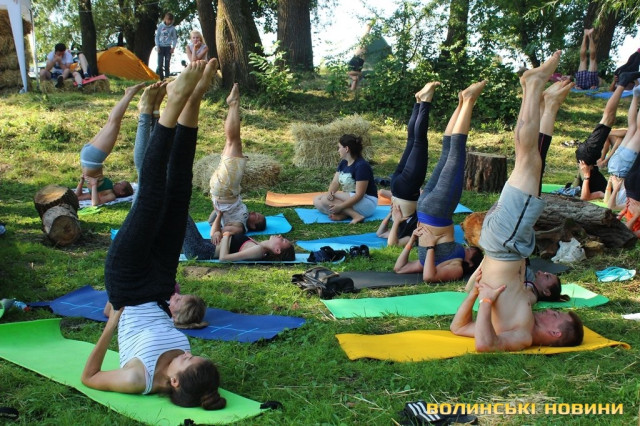На початку заняття сертифікований інструктор з йоги в Луцьку Христина Губська допомогла усім розслабитися та абстрагуватися від різних думок. Ну а далі всі гуртом перейшли до вправ.