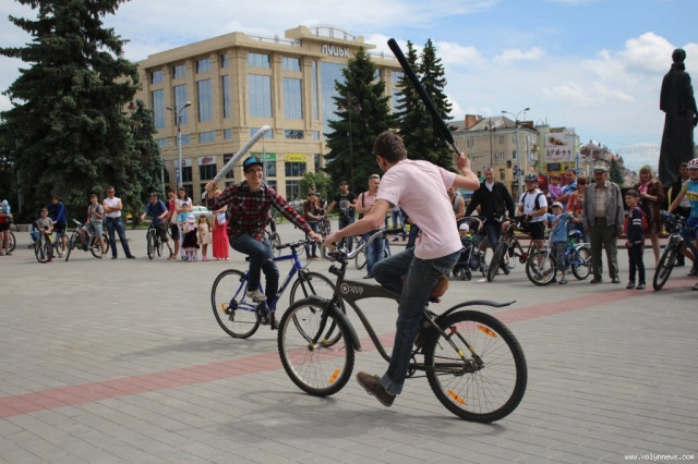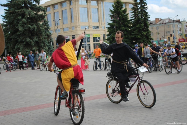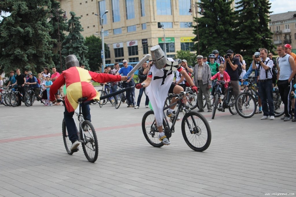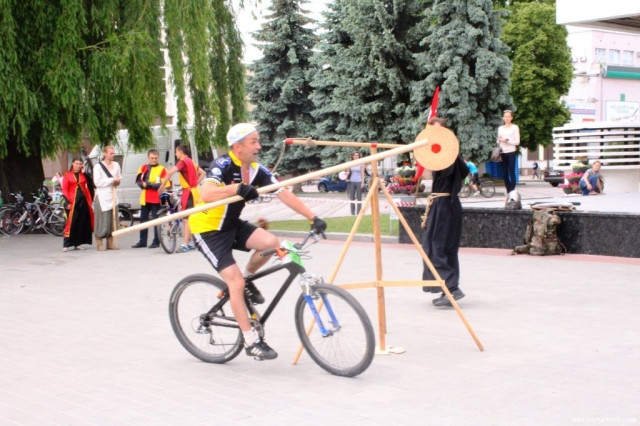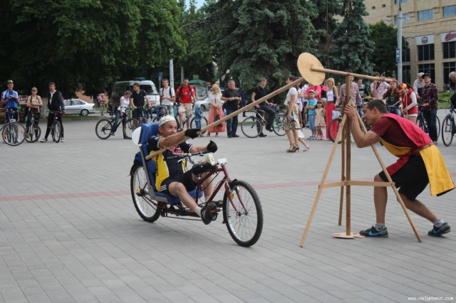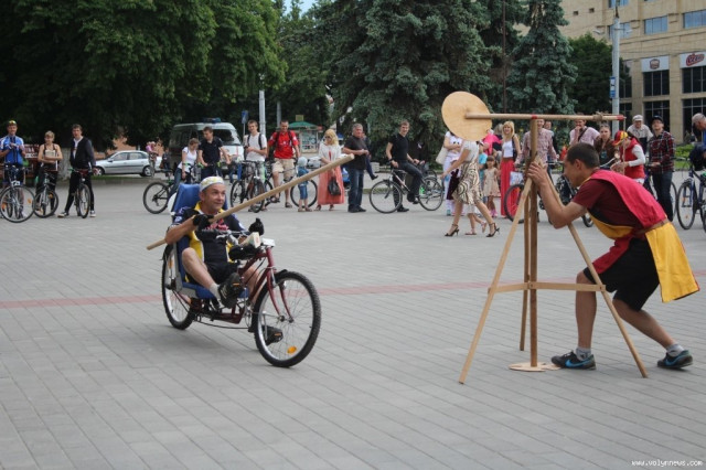 Потому учасники дійства влаштували середньовічні розваги на велосипедах. Зокрема усі бажаючі могли перевіряти себе на вправність зі списом, поцілюючи на велосипеді у мішень.