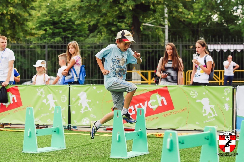 Ведучі, а також їхні помічники, троє веселих звіряток-чемпіонів — Ведмедя, Кенгуру та Кота — пропонували дітям та їхнім батькам стрибнути потрійний або з місця, пробігти естафету. Переможці і не тільки вони отримували від звірят подарунки, а також сертифікати, які засвідчують встановлення особистого рекорду чемпіонату! Приємно, що дитячі азарт підтримали й батьки — вони часто разом із своїми доньками і синами стрибали, бігали у фан-зоні.
