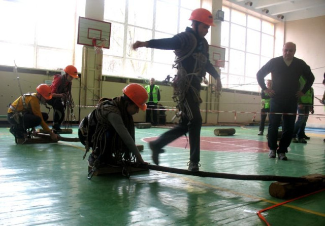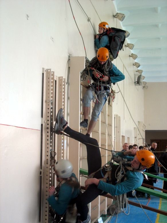 На час змагань спортзал Луцької гімназії №18 перетворився на туристський полігон, на якому спортсмени вправно долали численні перешкоди – підйоми, спуски, траверси, навісні та крутопохилі переправи, крім того, демонстрували свої вміння з техніки в’язання туристських вузлів. Змагання проходили паралельно на двох дистанціях – ІІ та ІІІ класу.