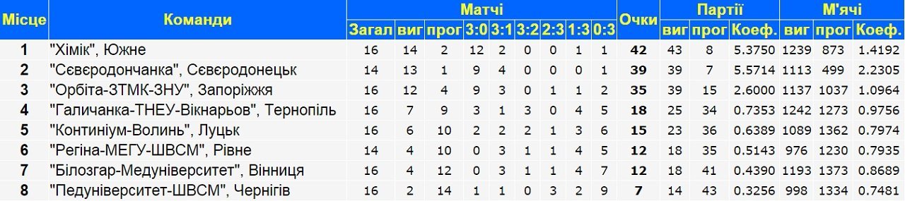 «Континіум-Волинь-Університет» – «Галичанка-ТНЕУ-Вікнарьов» 3:1 (25:20, 20:25, 25:18, 25:22) 2:3 (26:24, 18:25, 26:24, 19:25, 8:15)