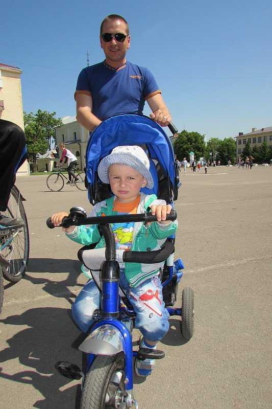 Семирічний Микита вирушив у веломандрівку центральними вулицями міста разом зі своєю мамою. «Мені це буде зовсім неважко, адже я з п’яти років добре їжджу на велосипеді. Також ми з сім’єю часто їздимо на великі відстані», - каже юний велосипедист.