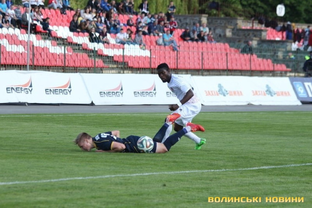 Утім вже через хвилину "Волинь" вирівняла рахунок, Бабатунде протаранив центр оборони "Металурга", після відскоку м'яч потрапив до Кобахідзе, Олександр помітив Бікфалві і віддав йому пас. З декількох метрів Ерік вколотив м'яч у сітку. "Волинь" відновлює статус кво - 1:1.
