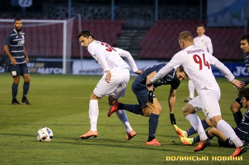 Волинянам вдалося оговтатися після пропущеного голу, і до кінця тайму вони мали декілька реальних нагод зрівняти рахунок: спочатку Шабанов завдав фірмового удару з лівої, але м’яч «просвистів» над поперечкою. Згодом Хомченку вдалося на фланзі пошити у дурні півзахисту гостей, віддати точно на Мемешева, Редван в один дотик скинув на того ж таки Шабанова, але знову удару капітана «Волині» забракло влучності. За дві хвилини свій шанс отримав Петров, але йому не вдалося як слід пробити головою після навісу з флангу.