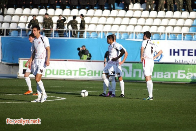 До кінця тайму господарі змарнували декілька нагод забити гола. Варто відзначити хорошу гру воротаря «Волині» Дениса Шеліхова. Для початку початку він зняв «шкіряного» фактично з ноги Гоменюка, потім – перевів на кутовий дальній постріл Володимира Польового.
