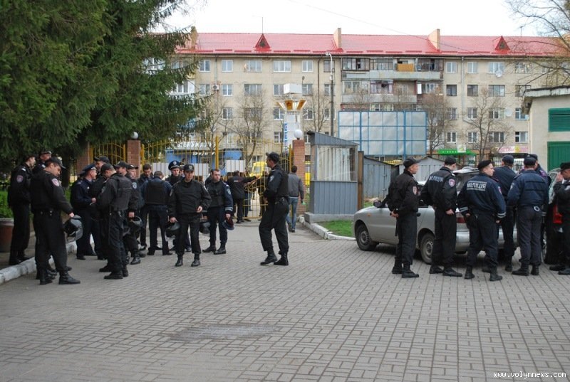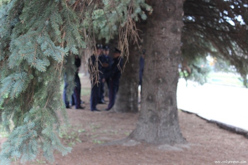 Одним із перших на стадіон прийшов ректор Волинського національного університету імені Лесі Українки Ігор Коцан. Він спілкувався із начальником УМВС у Волинській області Богданом Щуром.