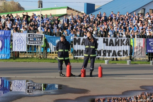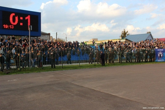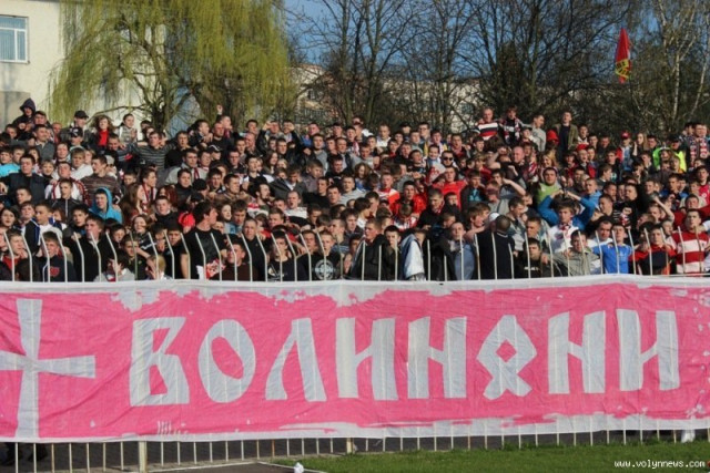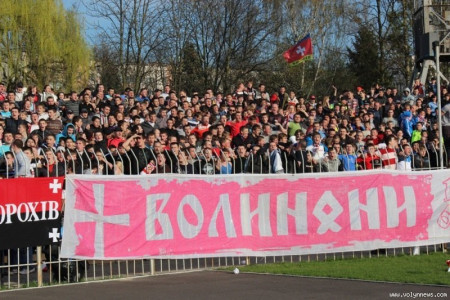 Тим часом 17 сектор «Авангарду» традиційно «окупували» фанати «Волині». Судячи із написів, сюди вони приїхали не лише із Луцька, а й із Ковеля та Горохова.