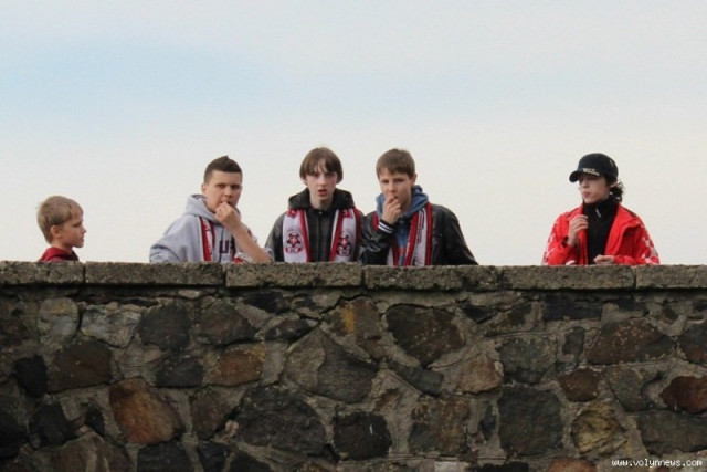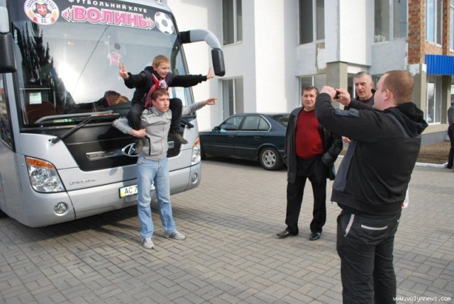 Натомість найвідданіші вболівальники «хрестоносців» фотографувалися на фоні автобусу ФК «Волинь».