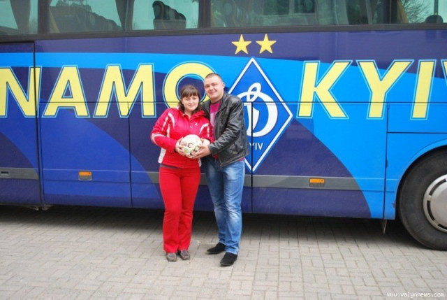 Перед матчем знайшлося чимало охочих сфотографуватися на фоні автобуса «Динамо», а також із футбольним м’ячем, на якому залишили автографи кияни.