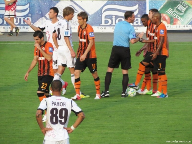 На 16-ій хвилині неоднозначна ситуація сталася на лінії карного майданчика гостей. Після того, як опорний хав «Шахтаря» Тарас Степаненко «поставив корпус», на траві опинився Рамон Лопес. Однак, суддя матчу Євген Арановський вирішив, що порушення правил не було.