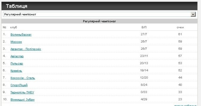 Здобувши одну перемогу в двобої з запорізьким «Авіастаром», БК «Волиньбаскет» очолив турнірну таблицю чемпіонату України з баскетболу серед чоловічих команд Вищої ліги.