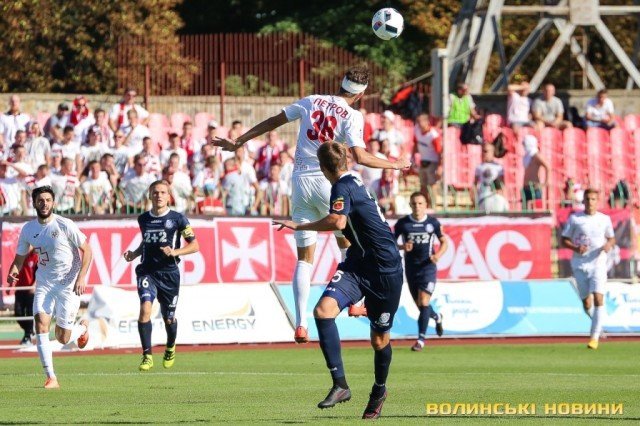 Саме тому гра обіцяла бути цікавою та напружено. Такою вона і була, але, на превеликий жаль вболівальників, боротьба точилася у центрі поля. Вже на 4-й хвилині автор голу у ворота «Динамо» Сергій Петров отримав стусана у боротьбі з захисниками одеситів. Сергію довелось фактично увесь матч відіграти із пов’язкою на голові. Перший небезпечний момент у маті виник біля воріт волинян на 11-й хвилині: