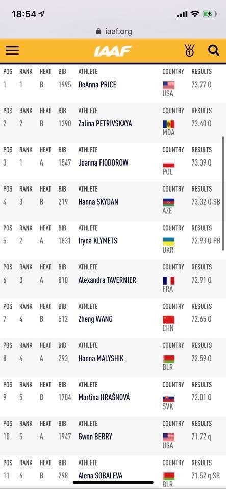 За умовами до фіналу проходили 12 найкращих метальниць, або спортсменки, які показали результат 72 метри. Після першої спроби молот волинської спортсменки приземлився на позначці 71,51 метра, а вже у другій спробі волинська валькірія таки пробилася у фінал, показавши результат 72,93 метра.