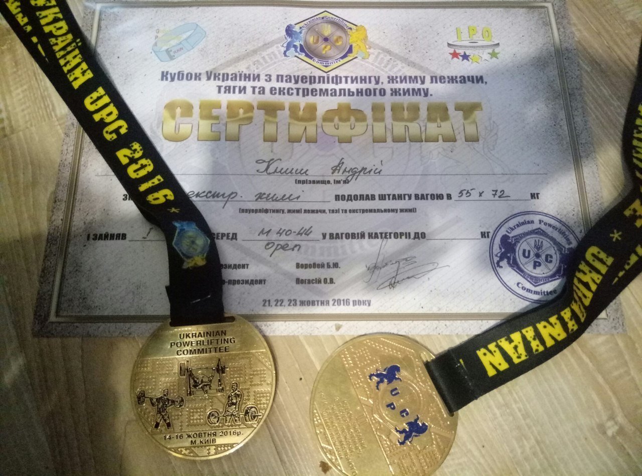 Книш Андрій посів перше місце у відкритій віковій категорії, витиснувши штангу 55 кілограм за 3 хвилини 72 рази.