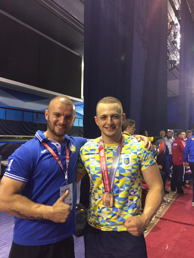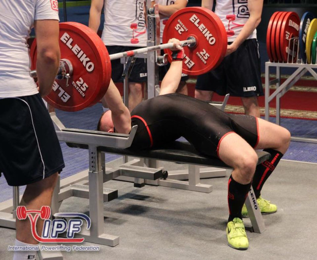 "У присіданні спортсмен зафіксував 260 кг; у жимі лежачи 180 кг, які принесли йому малу бронзову нагороду.
