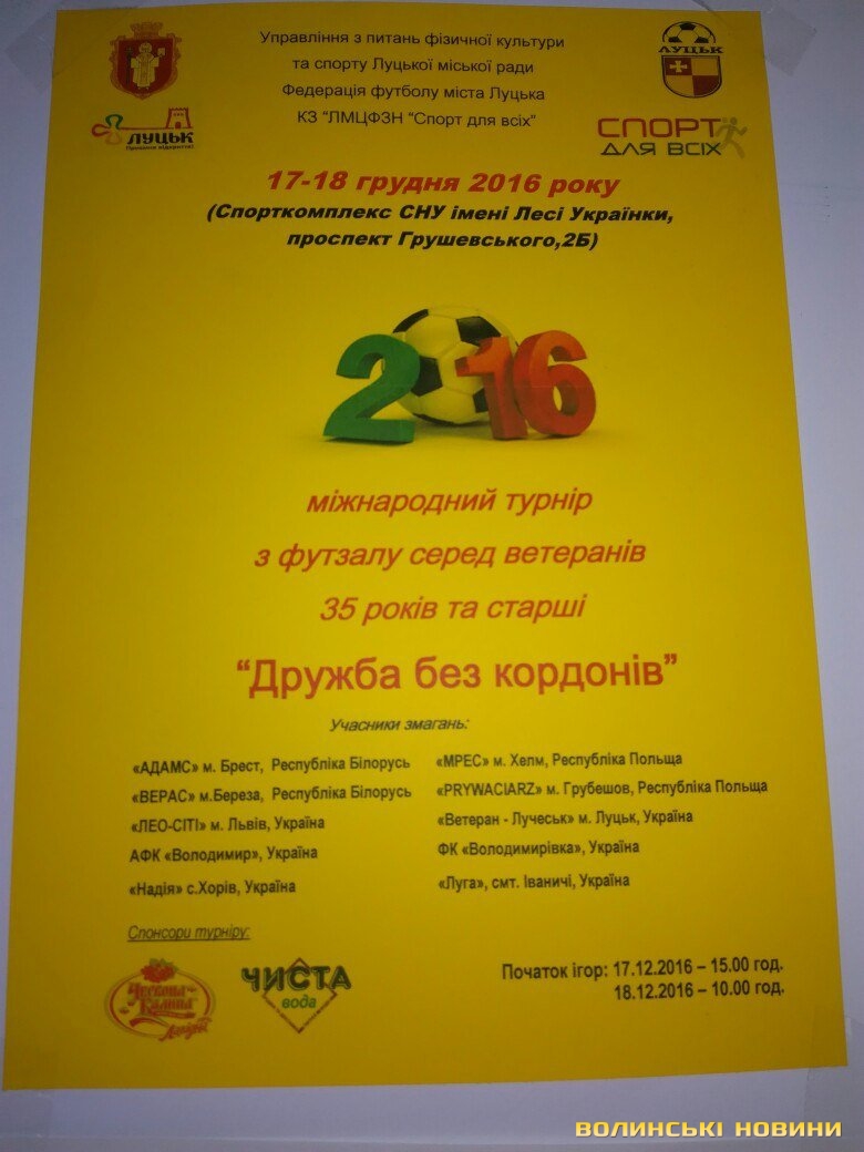 Участь в змаганнях взяли ветерани віком від 35 років та старші. Всього на паркеті змагалися десять команд: білоруські «Адамс» (Брест), «Верас» (м. Береза), польські «Prywaciarz» (Грубешов), МРЕС (Хелм), українські АФК «Володимир», «Ветеран-Лучеськ» (Луцьк), «Луга» (Іваничі), «Надія» (Хорів), ФК «Володимирівка» (за яку грав колишній нападник «Карпат» Тарас Кабанов), «Лео-Сіті» (Львів).