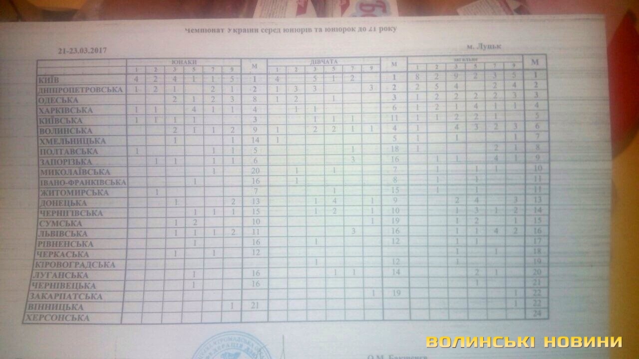 У загальному підсумку Чемпіонату України серед юніорів та юніорок до 21 року з дзюдо Волинська область посіла 6 місце із 25 регіонів України.