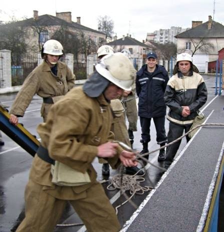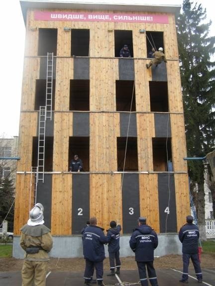 Якщо першу вправу конкурсної програми учасники намагалися виконати якнайшвидше, то на наступному етапі – рятуванні потерпілого з вікна четвертого поверху навчальної вежі та саморятуванні – журі з числа представників ГУ МНС оцінювало правильність і точність дій.