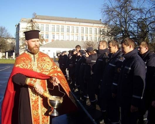 До загальної молитви рятувальників закликав духівник та окропив учасників святою водою.