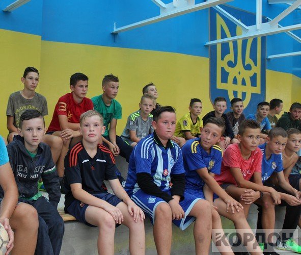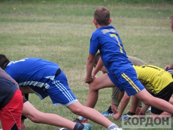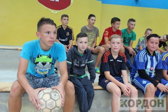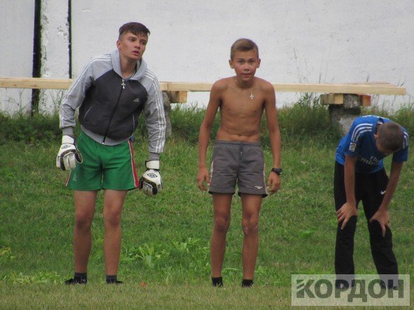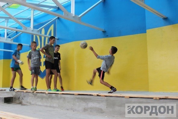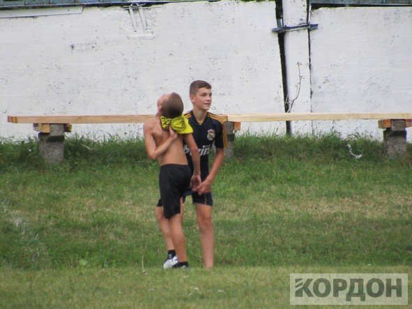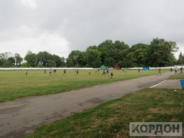 Добре, що на стадіоні є накриття, яке нещодавно пофарбували та зробили там місця для сидіння. Юним спортсменам під час зливи було куди подітися. Коли з неба вже посипалась легка мокра мряка, хлопчаки все ж вийшли зіграти матч.