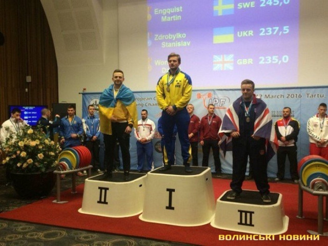 Чемпіонат Європи з класичного пауерліфтингу завершився у естонському місті Тарту. У віковій групі юніорів волинянин, представник спортивного клубу «Інтератлетика» Станіслав Здробилко, став третім за сумою триборства.