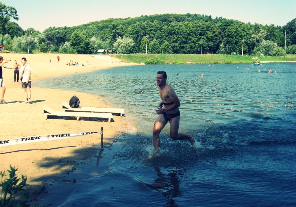 До слова, крос-триатлон - це змагання, під час якого учасники пливуть 1000 метрів через озеро Сомин, далі 20 кілометрів на велосипеді і після цього 6 кілометрів біжать до центру села Смідин.