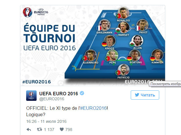 Група технічних спостерігачів УЄФА назвала символічну збірну Євро-2016.
