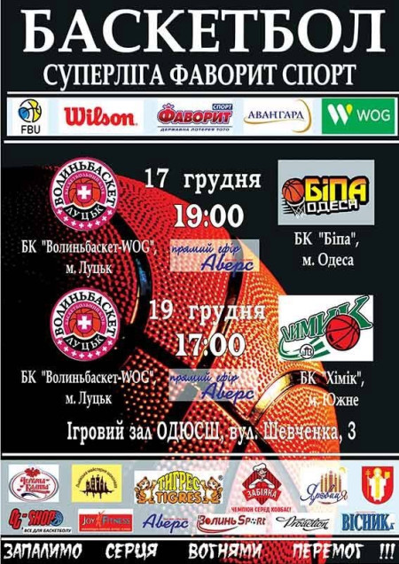 Повний розклад домашніх ігор БК «Волиньбаскет»