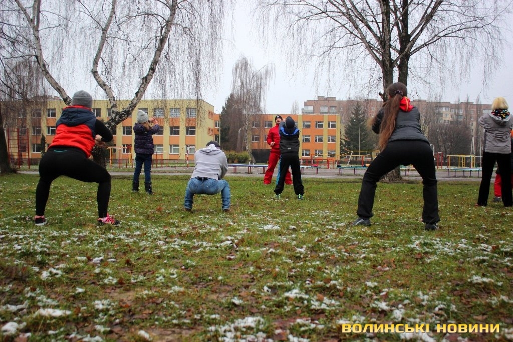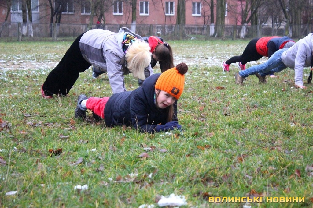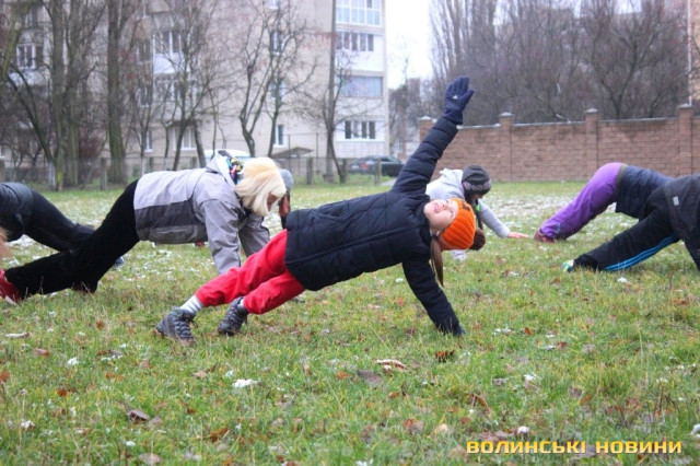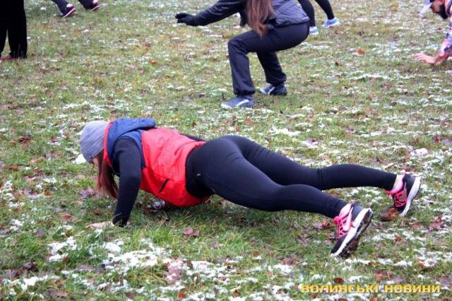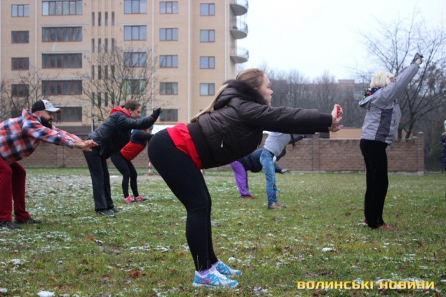 Незважаючи на залишки снігу, якими була вкрита трава, учасники випробували себе на стійкість у прямому й переносному сенсі, виконуючи улюблену планку. Цього разу новачкам було не легко, проте постійні учасники акції трималися холоднокровно та без жодних нарікань. Дітлахи, як завше, намагалися не відставати від дорослих та триматися на рівні, беручись за кожну нову вправу з небаченим ентузіазмом.