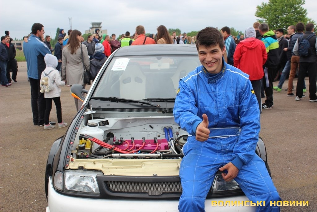 Хлопець розповів, що на автоперегонах вже не вперше – регулярно бере у них участь на території всієї України з 13-ти років. Мама ж Дмитра додає, що за кермом її син ще з меншого віку – шести років. Тренується тут же, на території колишнього аеродрому в селі Крупа.