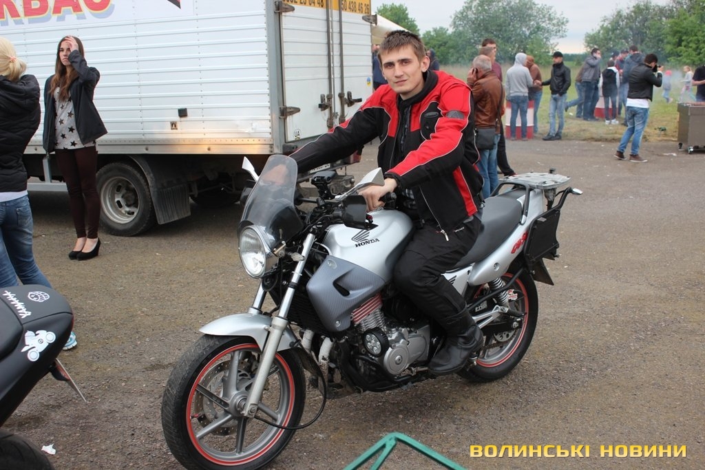 Один із учасників цих заїздів, мотоцикліст Роман Романюк із Луцька поділився, що на подібних змаганнях він не вперше – бере у них участь з 18 років. Їздить на своїй новій Honda CB500, яка у нього вже другий рік. Кінських сил у ній – 57. Раніше ж хлопець був власником менш потужного Geon 250із 22-ма «конячками».