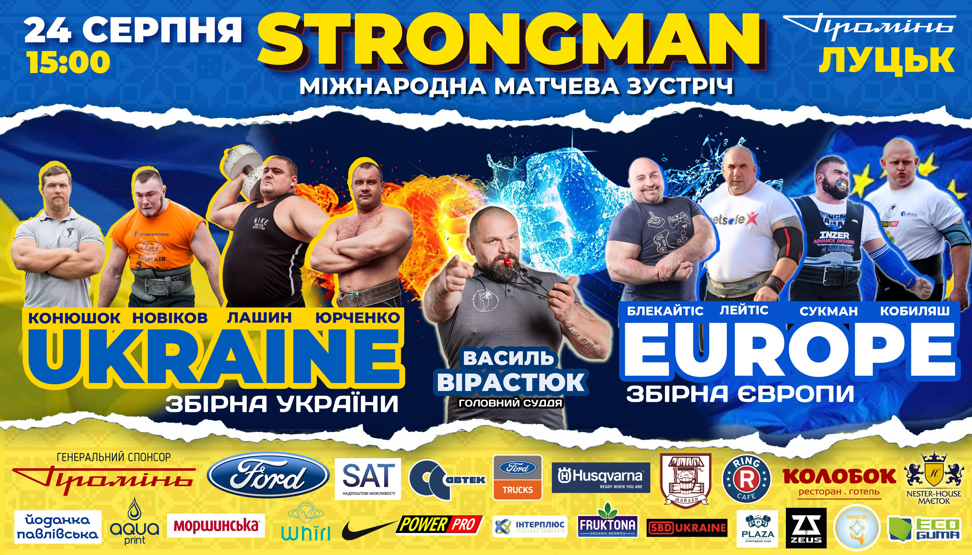З нагоди Дня Незалежності України та Дня народження РЦ Промінь у Луцьку очікується непересічна спортивна подія. Відбудеться матчева зустріч стронгменів "Збірної України" проти "Збірної Європи". У складі команд зберуться по чотири потужних атлети, які вже давно стали відомими у всьому світі, повідомляють організатори.