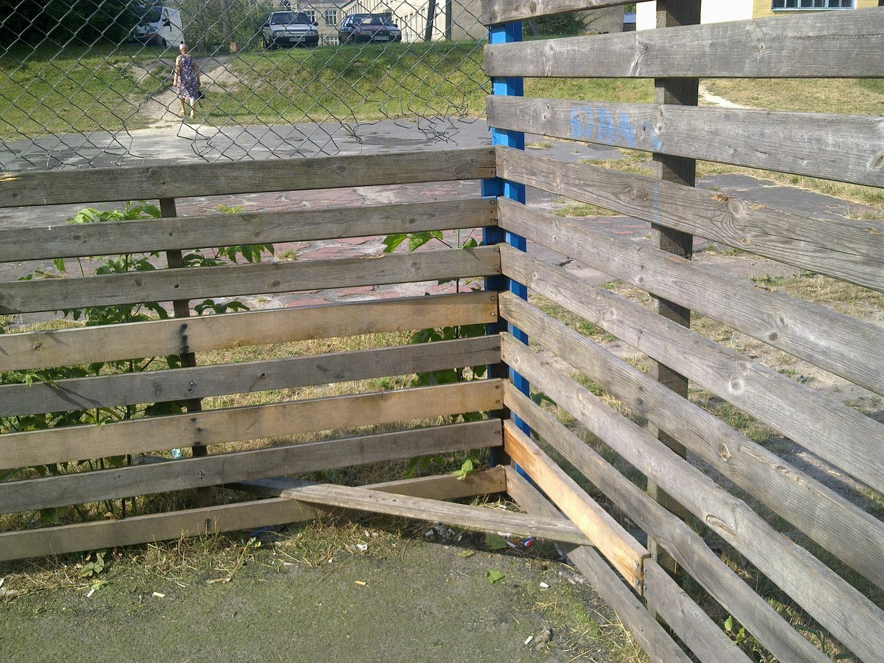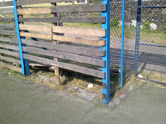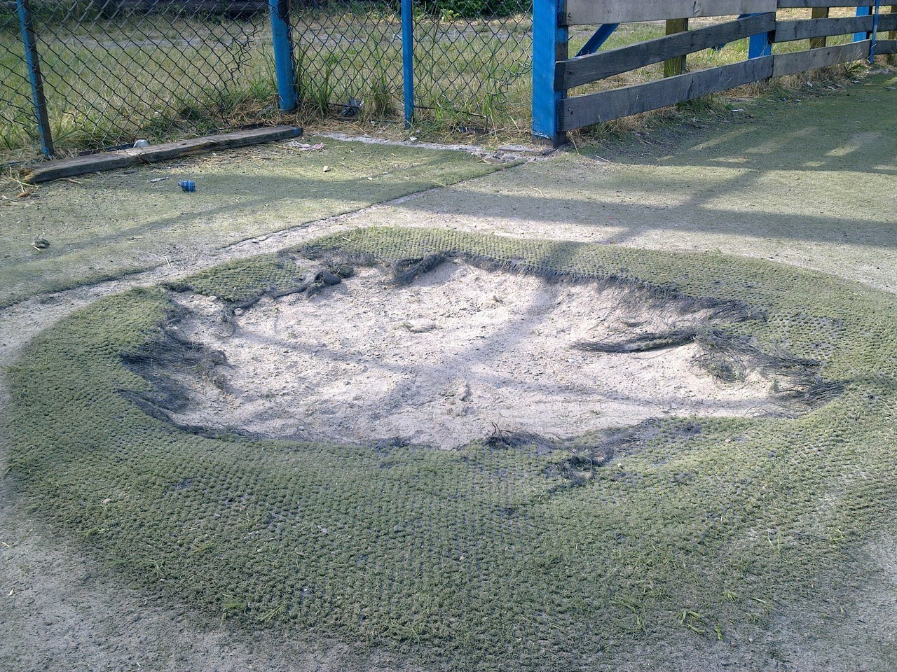 Маєте рацію. Немає нічого дивного, що за такий тривалий період використання кортика покриття зносилось, а огорожа порвалась. Там же постійно відбуваються тренування...