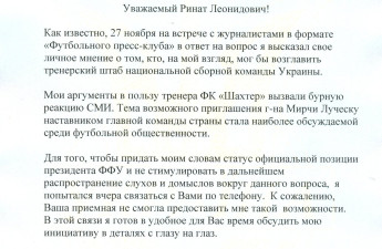 Президент Федерації футболу України Григорій Суркіс вкотре звернувся до президента ФК «Шахтар» Ріната Ахметова не напряму, а через відкритий лист
