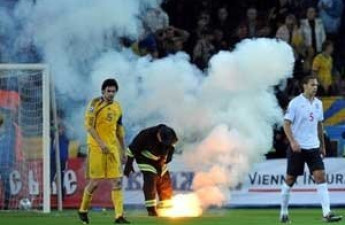 Санкції проти України за «фаєри», кинуті горе-фанатами під час матчу відбіркового етапу ЧС-2010 з Англією у Дніпропетровську, будуть визначені вже після матчів плей-офф із греками