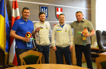 Начальник Волинської ОВА Юрій Погуляйко та голова обласної ради Григорій Недопад зустрілися із волинськими спортсменами-дефлімпійцями, які здобули першість у ХХІV літніх Дефлімпійськіх іграх 2022 та їх тренарами