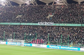 Під час матчу чемпіонату Польщі між «Легією» та «Віслою» фанати обох клубів обмінювалися зарядами на підтримку України проти країни, яка прийшла зі зброєю на нашу землю, знищує наше населення, армію, будівлі.